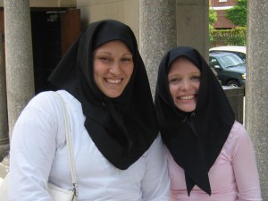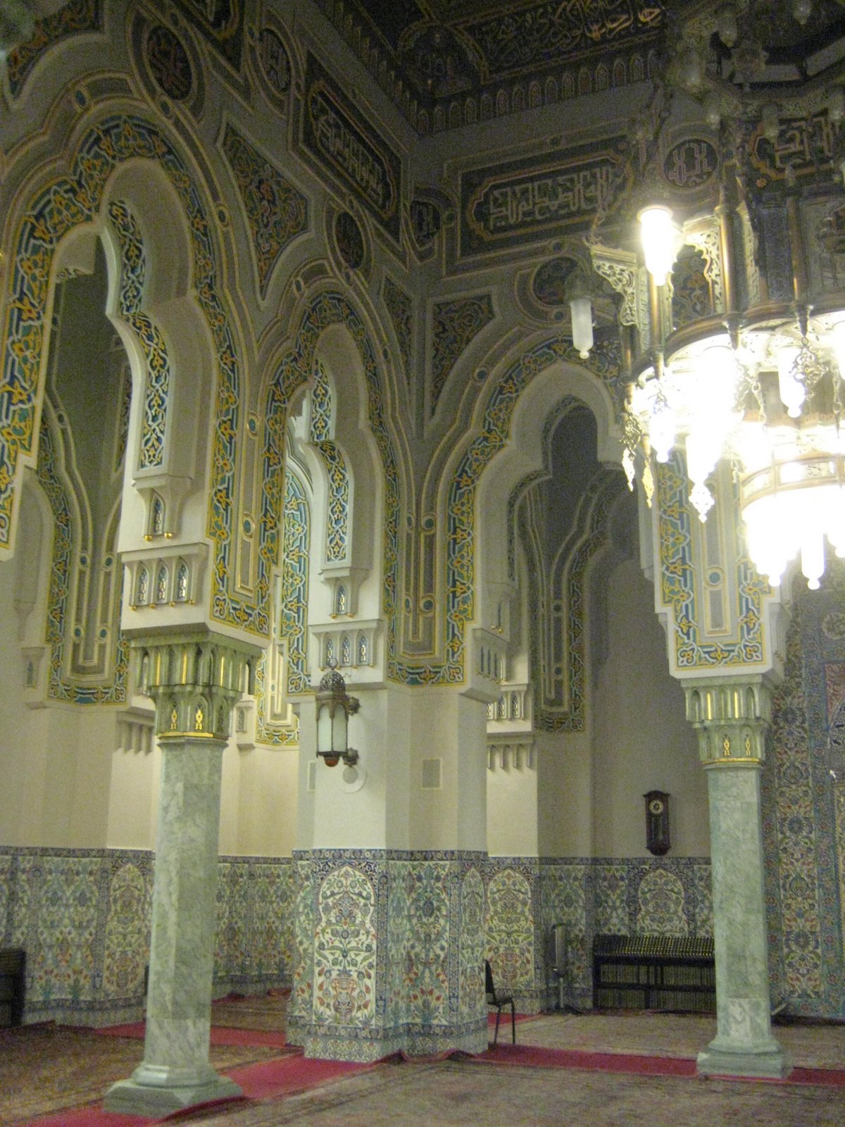Our group then split into two and my half went to an Islamic center. It was really interesting. We had to take our shoes off, cover our bodies, and wear head coverings. The place was very beautiful inside. Much of the walls were covered with painted porcelain squares.
