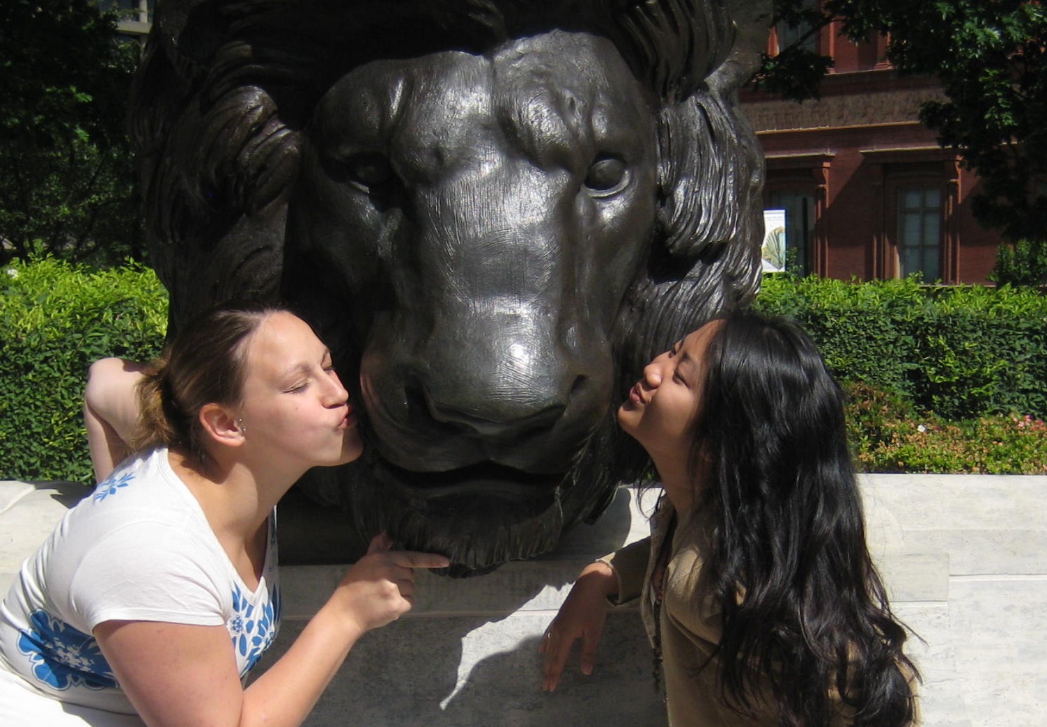 Yesterday we traveled around D.C. to a variety of different neighborhoods. We learned a lot about the differences between the areas and also about the problem of gentrification. We started out the day by going to the National Building Museum, we arrived early and took the chance for a photo shoot with some lions..