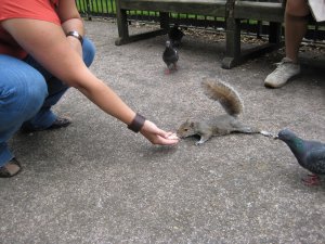 Walking around Hyde Park they have some really crazy trees. This tree made it look like the Earth was wearing a big wig and you could walk under it and climb up in it’s branches. Casey and I also had fun feeding the squirrels who are quite friendly. A little old lady informed me that the squirrels would not eat bread however, they only liked peanuts. She also said we had better not feed them salted peanuts because it was bad for them. Thus Casey and I’s plans for next weekend were born. Feeding peanuts to the squirrels at the park.