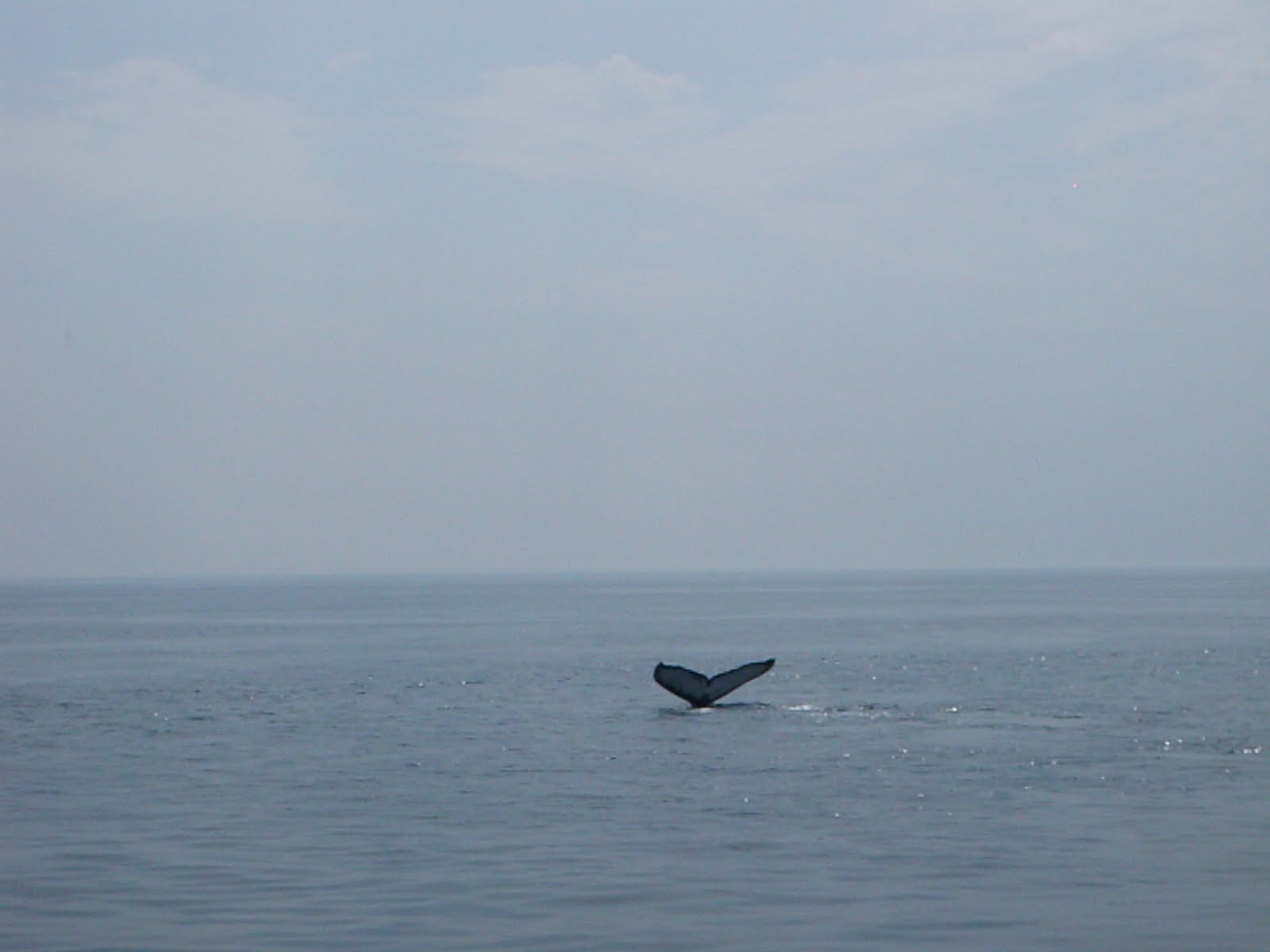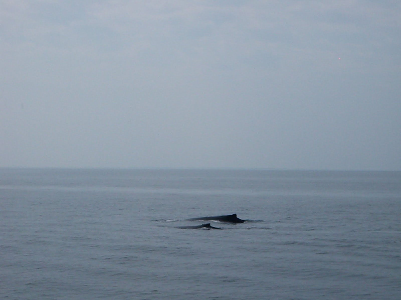 Whale watching is incredible.  I need everybody to add it to their things to do before they die list (unless you get super seasick or have a water phobia) because honestly whales are fascinating.  They are enormous and beautiful creatures and sing in an equally beautiful language of their own.  On this little trip out of Massachusetts, Merry and I got the pleasure of seeing at two different times a cow (mama whale) and her calf (baby whale).  The first Humpback whale we saw was named Filament. Before our trip, they had not seen her yet this year and were quite excited to learn of her having had a calf. Calf, my butt, they’re born at over a ton!  They’re are able to name the whales by the markings/coloring on the underside of the whale’s tail.  It is sort of similar to how humans have unique fingerprints; each whale has a unique underside pattern.  They generally name the whale  (they have whale naming parties, seriously) something that resembles it’s pattern.  In this case Filament was fitting to the stripey marking of this whale’s tail. We hung around and watched these two for quite some time as they were just out on a Sunday afternoon stroll.