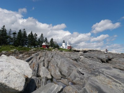 From there onto the Pemaquid Point Lighthouse, it’s absolutely gorgeous. It was the perfect day and time for it. Bright blue sky but the rain clouds were moving in making for a nice contrast. Another beautiful wide open ocean space and the rocks here are amazing. As you can see in the photos they are long uneven striations and ledges with pools moving out towards the ocean, which was at fairly high tide. There isn’t any way to explain the coast of Maine and the beauty it holds and photographs can’t start to compare, so mysterious. It’s the unknown ocean, the cool fresh breeze, the enormous boulders and sounds of the water crashing in around your feet. Just come see for yourself.