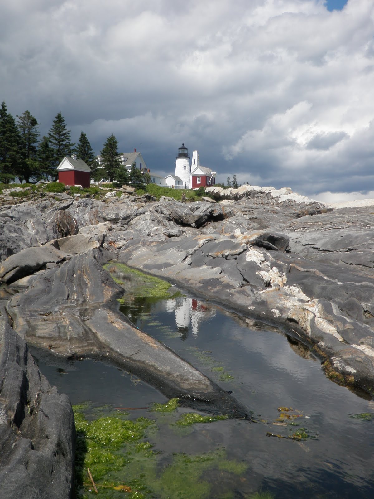 From there onto the Pemaquid Point Lighthouse, it’s absolutely gorgeous. It was the perfect day and time for it. Bright blue sky but the rain clouds were moving in making for a nice contrast. Another beautiful wide open ocean space and the rocks here are amazing. As you can see in the photos they are long uneven striations and ledges with pools moving out towards the ocean, which was at fairly high tide. There isn’t any way to explain the coast of Maine and the beauty it holds and photographs can’t start to compare, so mysterious. It’s the unknown ocean, the cool fresh breeze, the enormous boulders and sounds of the water crashing in around your feet. Just come see for yourself.