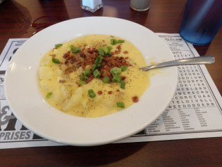 low fuel light popped on and there were no gas stations in sight (besides the two we passed deciding we could make it just a little bit further). Eventually we stopped in Sturgis, Michigan. We didn’t even know we were going to Michigan on this trip but we got gas and ate at a little place called Savory which was recommended to us by the gas station man. I’ve been having very good luck with gas station employee recommendations lately. This one and the lady in Galena who told Krista and I about Potosie Beer, delish. Dad had his first country-fried steak (which was actually two individual steaks) of the trip and I had cheesy potato soup. Both were scrumptious, it was a nice stop.