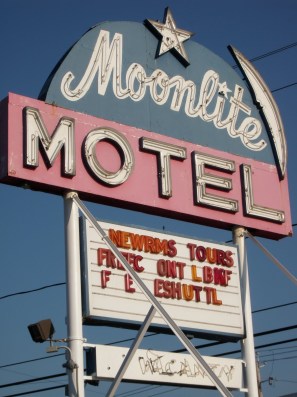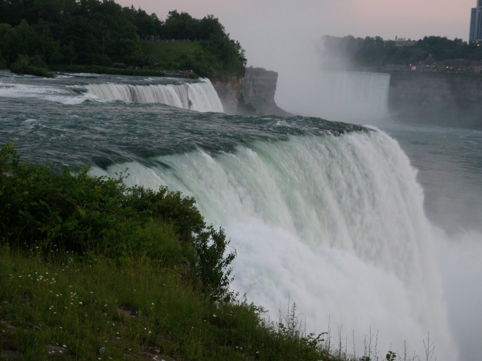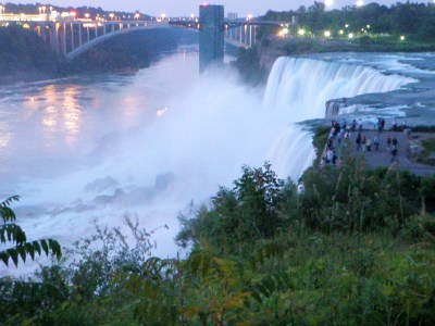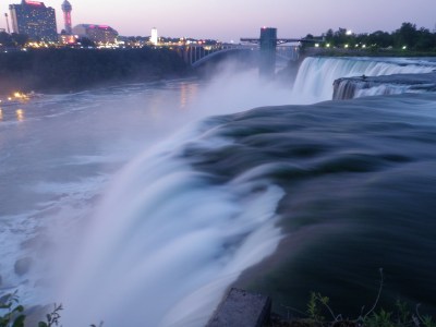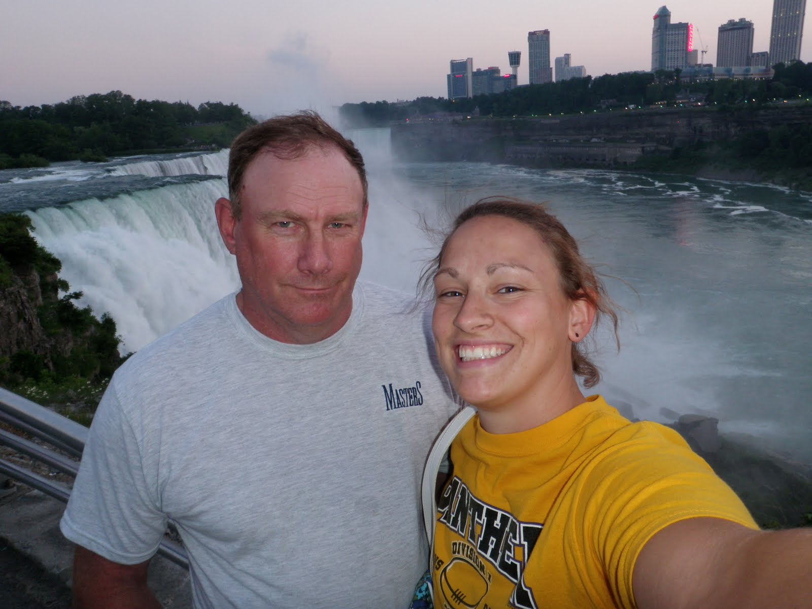 Still driving, we get to Erie, Pennsylvania and decide we may as well keep on to Buffalo, New York and then while we’re at it, Niagara Falls is only 27 more miles up north. So, I booked us a room in the somewhat swanky Moonlite Motel (classy name) whose outdoor pool is in the MIDDLE of the parking lot. I love it. The sun was setting and I wanted to get some pictures at Niagara Falls so Dad and I headed to the waterfront and thanks to my excellent navigation skills we ended up in the parking lot of a Duty Free Store. Hmm, how do we get out? As there are one way road spikes at the only gate in to the parking lot. Dad doesn’t have a passport, this makes things difficult. We ask the lady inside what to do and she informs us we must go to Canada and have no other choice, but we can park at their store for free. Excellent.
