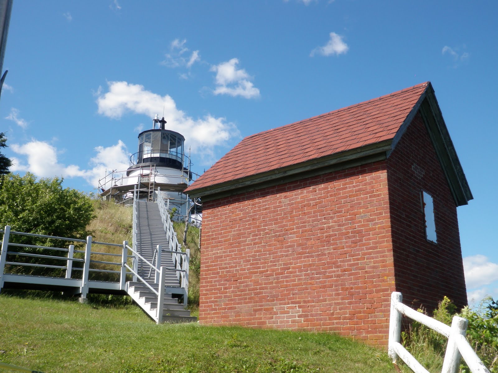 We enjoyed a nice evening at the Moonlite and even slept in just a little bit. We’ve begun our trek today across the state of New York. Stopped for breakfast at Cracker Barrel, an old favorite, and I had biscuits and gravy and guess what Dad had? His FOURTH county-fried steak of the trip, which he made sure to make known was MUCH BETTER than the one he had at Denny’s. Since we had a huge-o breakfast we decided to get somthing small from a travel plaza McDonald’s. I hadn’t had a Big Mac in a really long time, but I offically quit McD. The Big Mac was not even good, the patties were half the size of the bun and the Mac sauce was terrible. My favorite McD feature gone, I also had one of their frappes, also not delicious. Massachusetts was the worst possible drive ever. Traffic was backed up like crazy for no apparent reason it took us 2 ½ hours to go 63 miles. Is it bad that Dad and I were cut off by a train of three cars who kept zipping in and out of the lanes, shortly thereafter we saw the one who was bringing up the rear on the side of the road SMASHED and we said serves you right? It was nasty driving. We spent approximately 10 minutes driving through New Hampshire and then FINALLY we arrived in Maine. Portland is large so we decided to skip around it and ended up in Brunswick. We are trying to spend conservatively seeing as gas is expensive, food is expensive and we’ve spent over $40 on tolls on the way here.